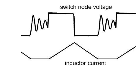 其产生的振铃如图6所示。它是由于电感电流为零,且两个开关均为关断时,在暂时处于高阻抗的开关节点上来回摆动电荷所导致。