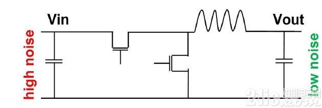 图8.降压稳压器的输入端实际上是噪杂的一端。